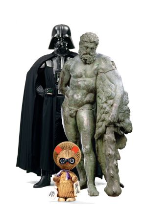 Sin embargo, es la última sala la que más ha dado que hablar. Está presidida por alguien tan inesperado como Darth Vader, el caballero jedi que terminó cediendo ante el lado oscuro de la fuerza. “En el museo hubo cierta resistencia, pero fui muy tozuda. Para mí, era esencial incorporar a figuras contemporáneas. Quería recordar que los creadores de hoy, se llamen George Lucas, Tim Burton o Hayao Miyazaki, también se inspiran en lo que encuentran en el museo”, explica la comisaria de la Petite Galerie y conservadora jefa del Louvre, Dominique de Font-Réaulx. Asegura que tuvo la idea para el proyecto al observar a sus dos hijos adolescentes pegados al videojuego Civilization, poblado por distintos mitos de la antigüedad clásica. Lo mismo sucede con Darth Vader, de quien se expone un casco original de 1979, procedente de la colección del futuro Lucas Museum of Narrative Art, que abrirá en Chicago en 2018. “El propio Lucas ha reconocido que se inspiró en el mito de Hércules. Ambos tienen una increíble fuerza que no logran controlar”.